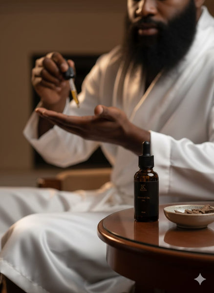 Kaydua Oud Beard Oil is a lightweight, non-greasy blend that nourishes the beard, conditions the skin underneath, and supports healthy beard growth. It tames frizz, adds a healthy shine, and leaves the beard subtly scented with a rich, woody oud fragrance for a refined finish.